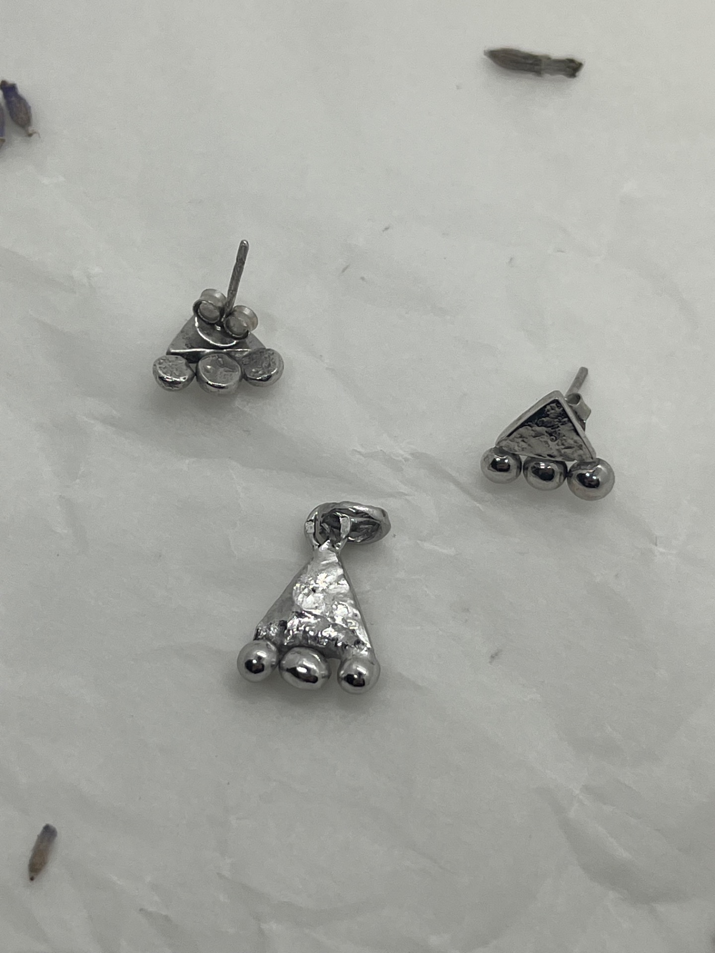 A szett egy pár bedugós fülbevalót és egy medált tartalmaz.