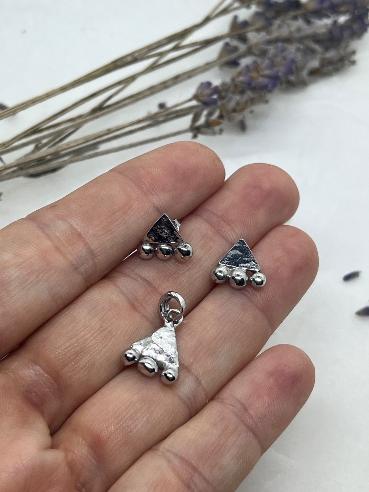 Ez a kis méretű, geometrikus sterling ezüst ékszer szett az azték kultúra motívumait idézi. A háromszög forma és a finom gömbdíszítés együtt karakteres, mégis könnyed megjelenést kölcsönöznek. Tökéletes választás hétköznapokra, vagy akár más fülbevalókkal kombinálva rétegezéshez.