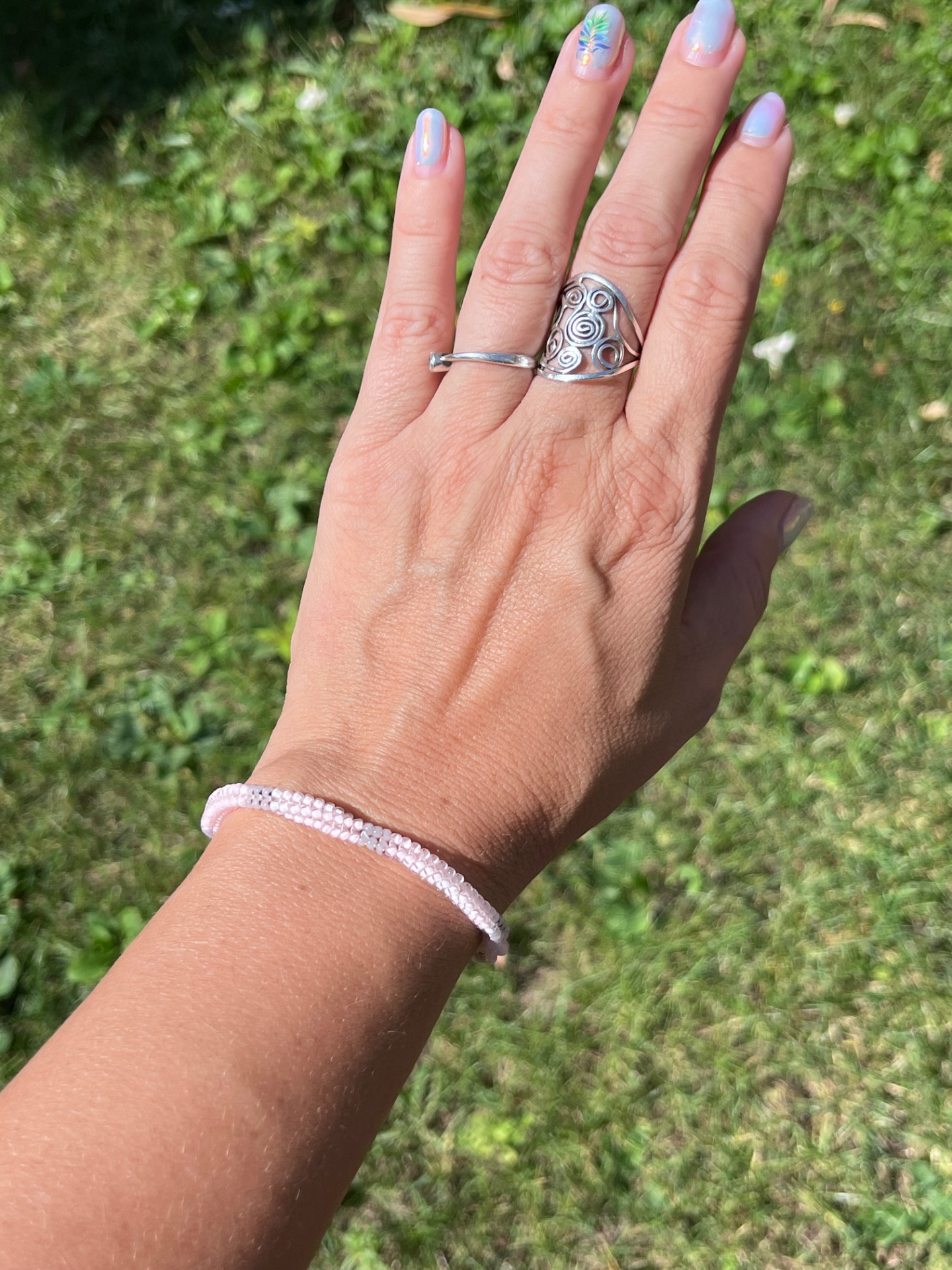 Minden darab kézzel készült apró üveggyöngyből, a természet finom szépségét ünnepelve.